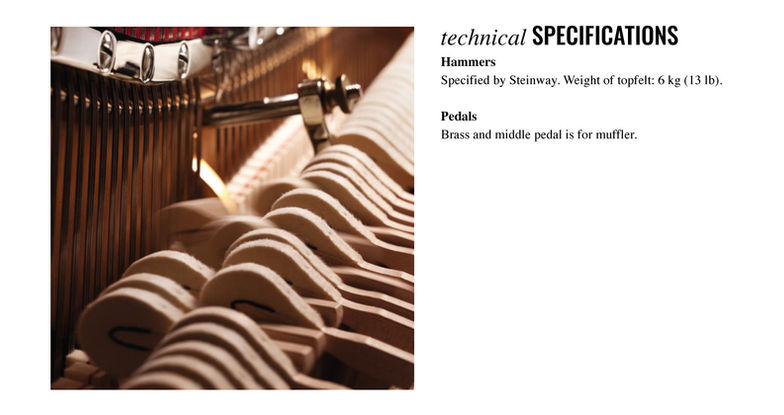 The Essex incorporates the latest design and engineering enhancements from STEINWAY’s dedicated research and development team. By utilizing specially engineered materials and carefully selected manufacturing environments, the Essex is able to deliver a level of musical performance previously unattainable in its price range.